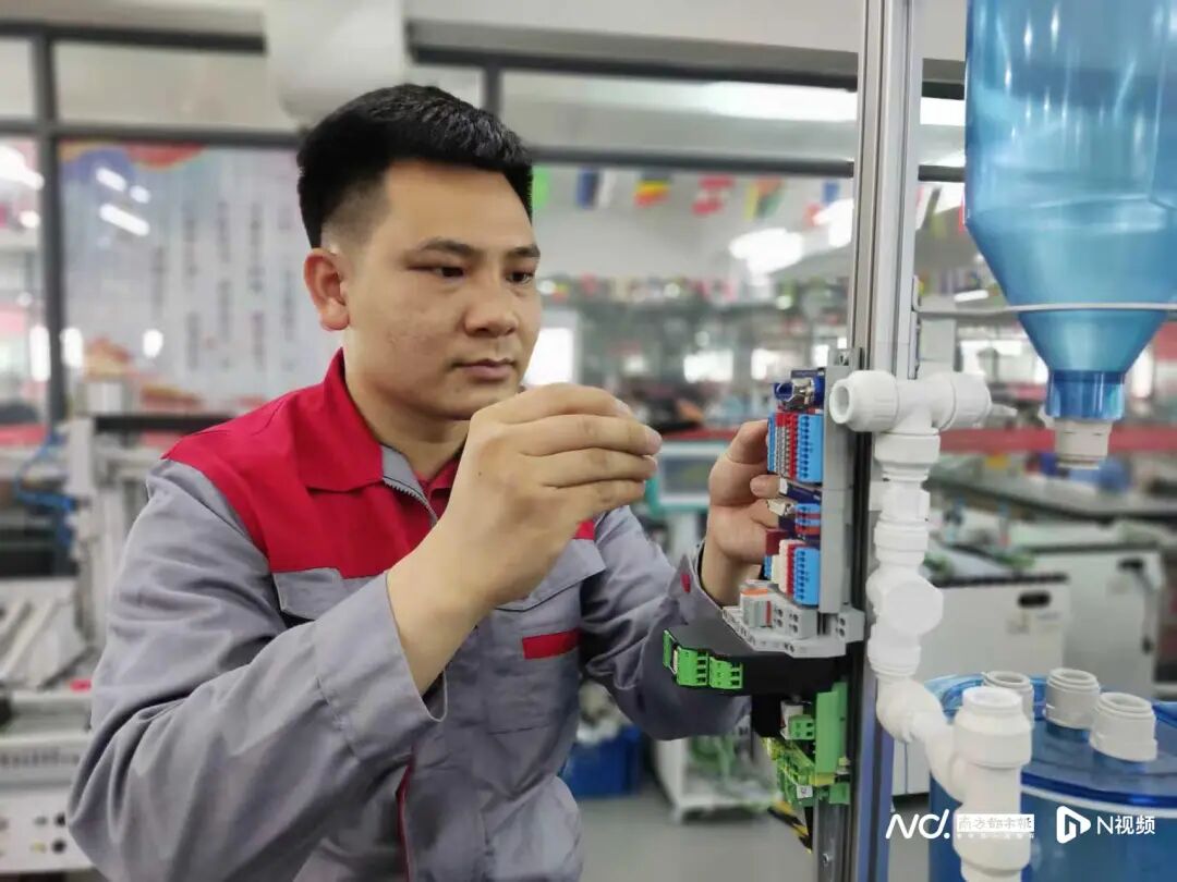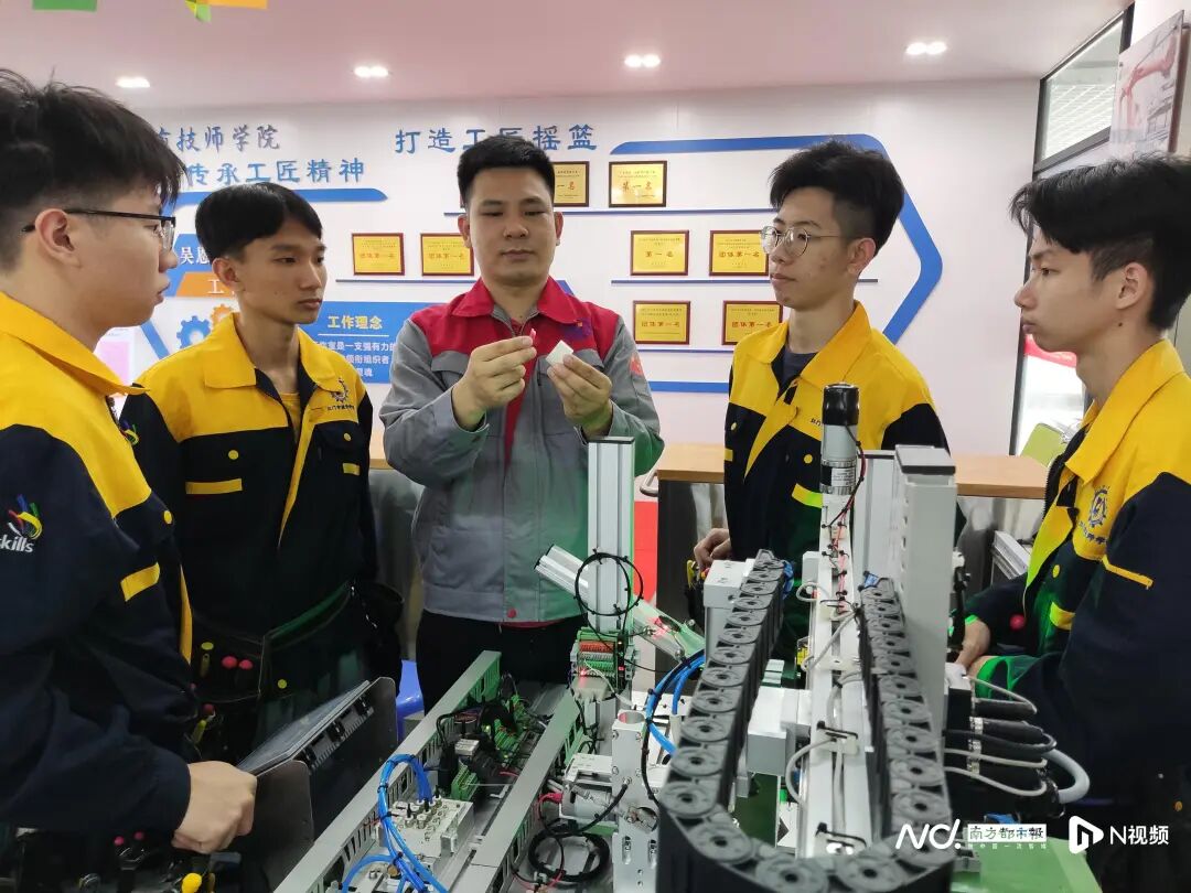 33岁的吴恩来身上有多重身份:国务院政府特殊津贴专家、国家级技能大师工作室带头人、全国技术能手、江门市政协委员……但最核心的,他始终是江门市技师学院的一名教师。从该校电气自动化专业学生,到留校任教,再到成为专业带头人,他的成长轨迹深深嵌入广东技工教育的发展图景之中。