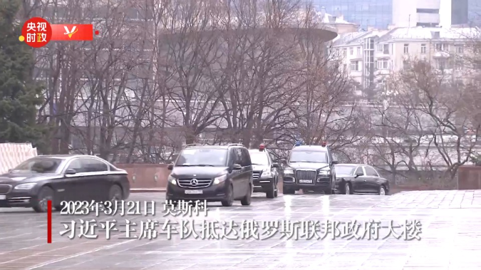 习近平主席车队抵达俄罗斯联邦政府大楼