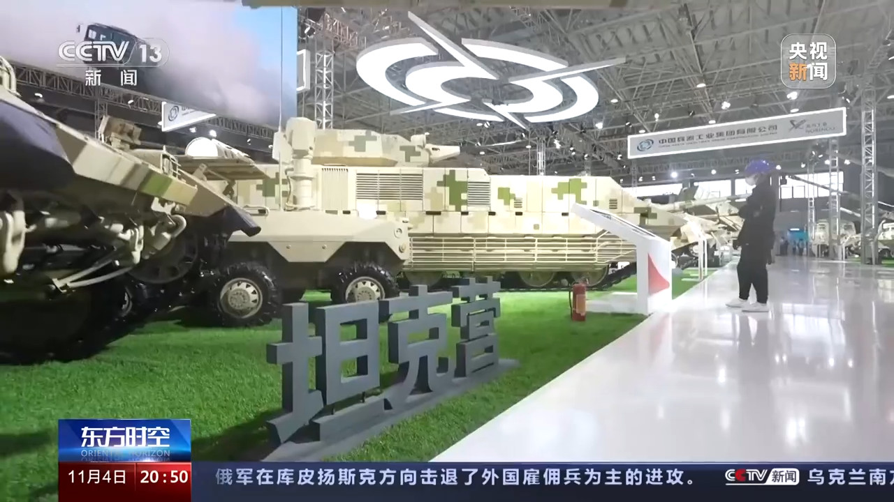 总台央视记者 李宁:我现在来到的是兵器馆的坦克营,整个兵器馆布展基本已经结束了。坦克和战车是这里面的主角,我旁边的就是VT4主战坦克,它除了参与静态展之外,还会出现在动态展的坦克表演中。