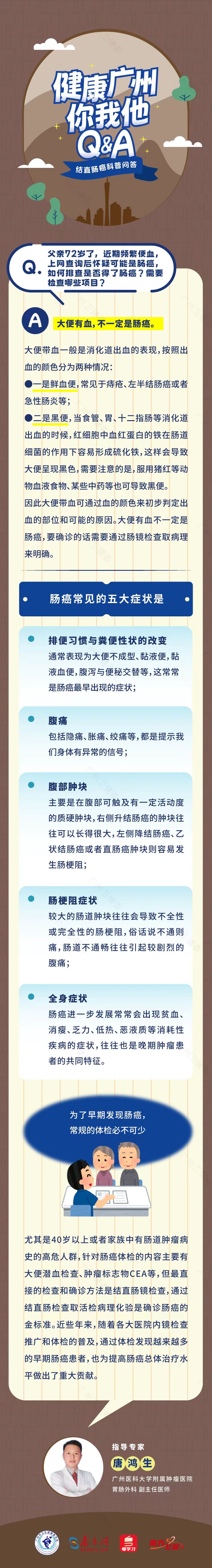 第五期,我们整理了一些典型的结直肠癌相关问题,邀请广州医科大学附属肿瘤医院胃肠外科副主任医师唐鸿生进行解答,一起来看看,有你提的问题吗↓↓↓