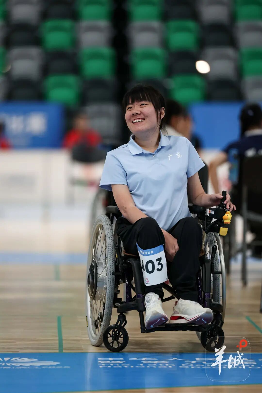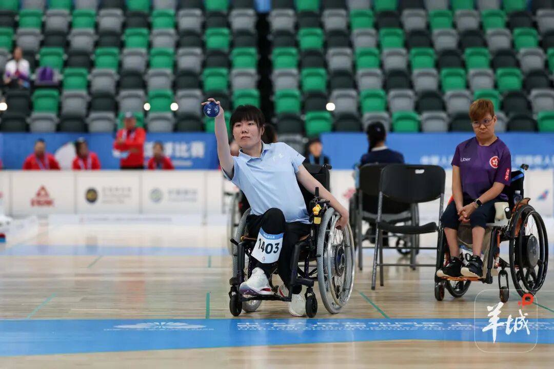 硬地滚球项目也是广东的优势项目,硬地滚球国家队基地就设立在广东,广东省硬地滚球队主教练谭巍麟也多次带队出征世界赛场。在首日进行的个人循环赛中,广东多位运动员亮相赛场。双方运动员坐在轮椅上,向目标球投球,投出的球距目标球越近,得分越高,累积分最高的获胜。