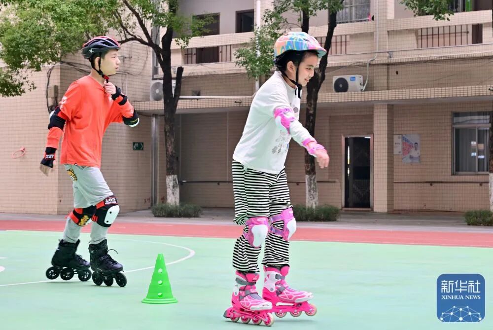 ↑12月11日,佛山市康复实验学校轮滑队在操场上训练。新华社记者 吴青昊 摄