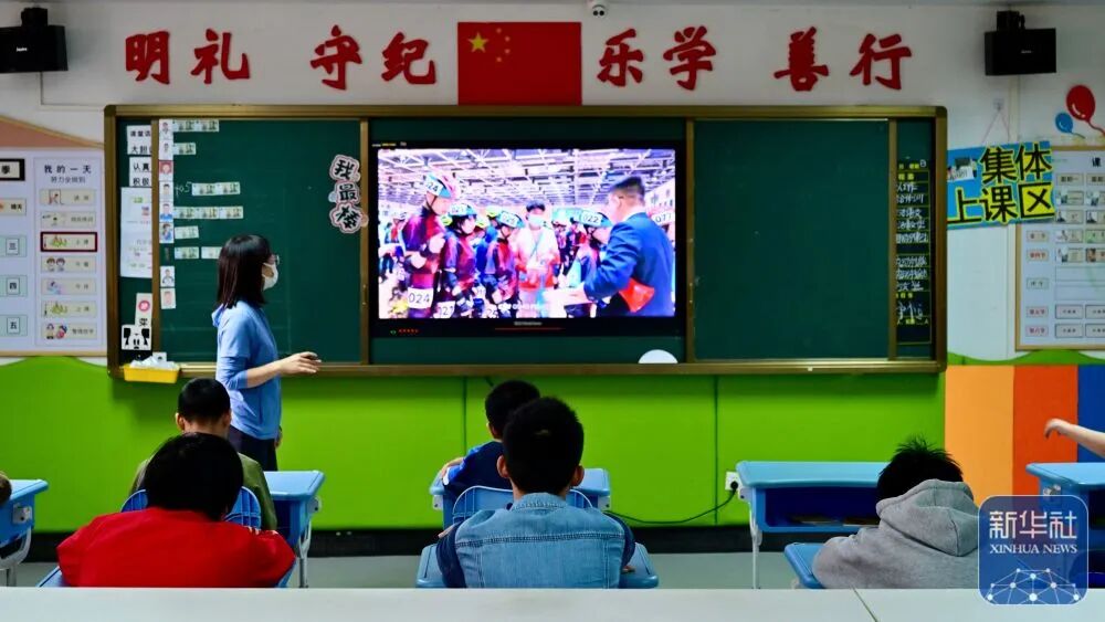 ↑12月11日,佛山市康复实验学校的学生观看校轮滑队在全国残特奥会上的比赛视频。新华社记者 吴青昊 摄