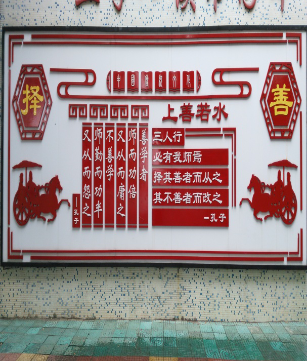 校园“绿色通道”的东南角是集自然美与文化美于一体的“择善园”。园中玉兰树、桂花树、紫薇树、迎春花等十几种花木俯仰生姿,弯曲石子小路穿梭花木丛中,择善园一角似彩色迷宫。马市中学的学子们漫步其中放松身心、感悟人生,却从未“迷路”!入园处有一块大黄石似是从地而生,石头南面有红漆择善箴言刻字,分外醒人。黄石北边的园墙上孔子圣言亦夺目入心。马市中学的学子们怎会“迷路”呢?