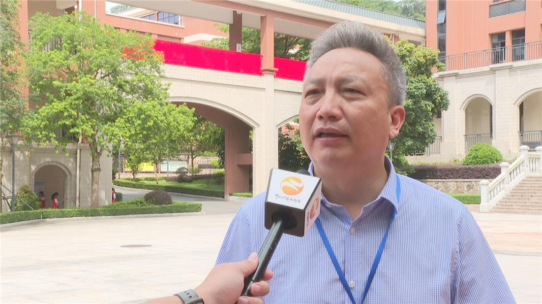 中山市桂山中学校长董再明:“今年其中一个新的变化是有3名监考员确保高考的安全,但这3名监考员怎么样做好监考工作,贴心地、暖心地、温馨地服务考生,我们也做了一个详细的培训。”