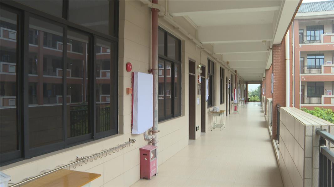 记者汤嘉源:“为了确保高考可以安全有序地进行,中山市桂山中学在细节上下足功夫,例如在学校所有的连廊两侧都铺设了防雨的红布,防止下雨天气雨水打湿学生的裤脚,另外他们在地面上也铺设了防滑地胶,防止学生不慎滑倒。”