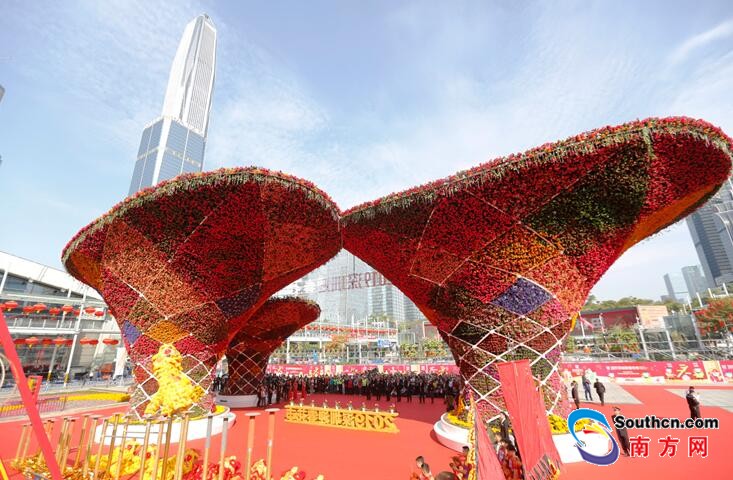 南方网讯 (全媒体记者/陈熊海)锣鼓喧天、醒狮欢舞、长龙翻腾……伴随着一场年味十足的开幕式,1月31日,2019深圳迎春花市在深圳会展中心启动,暂别3年的深圳大型花市宣告回归。开幕式上,深圳市委常委、常务副市长刘庆生等向来深建设者代表赠送年花。