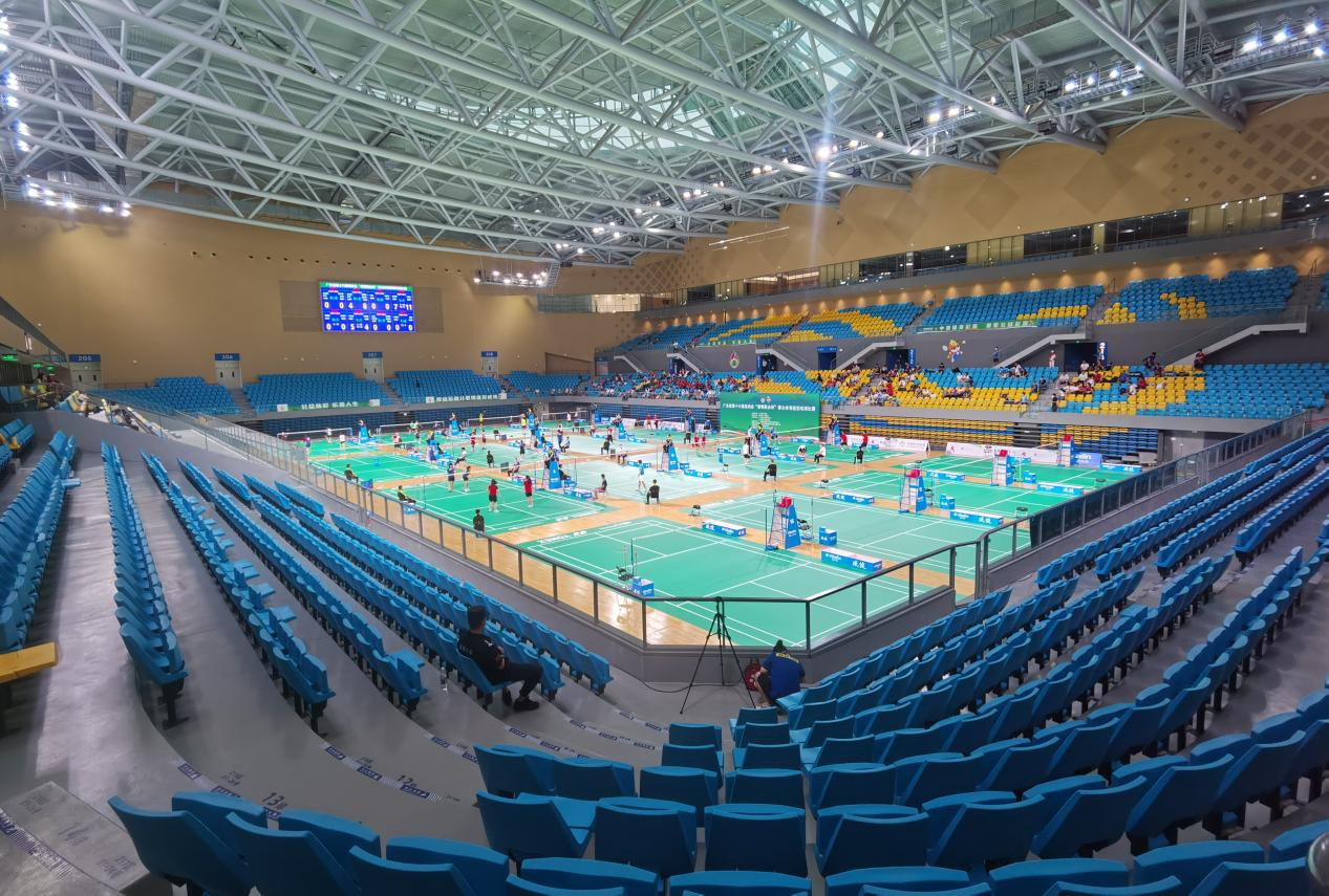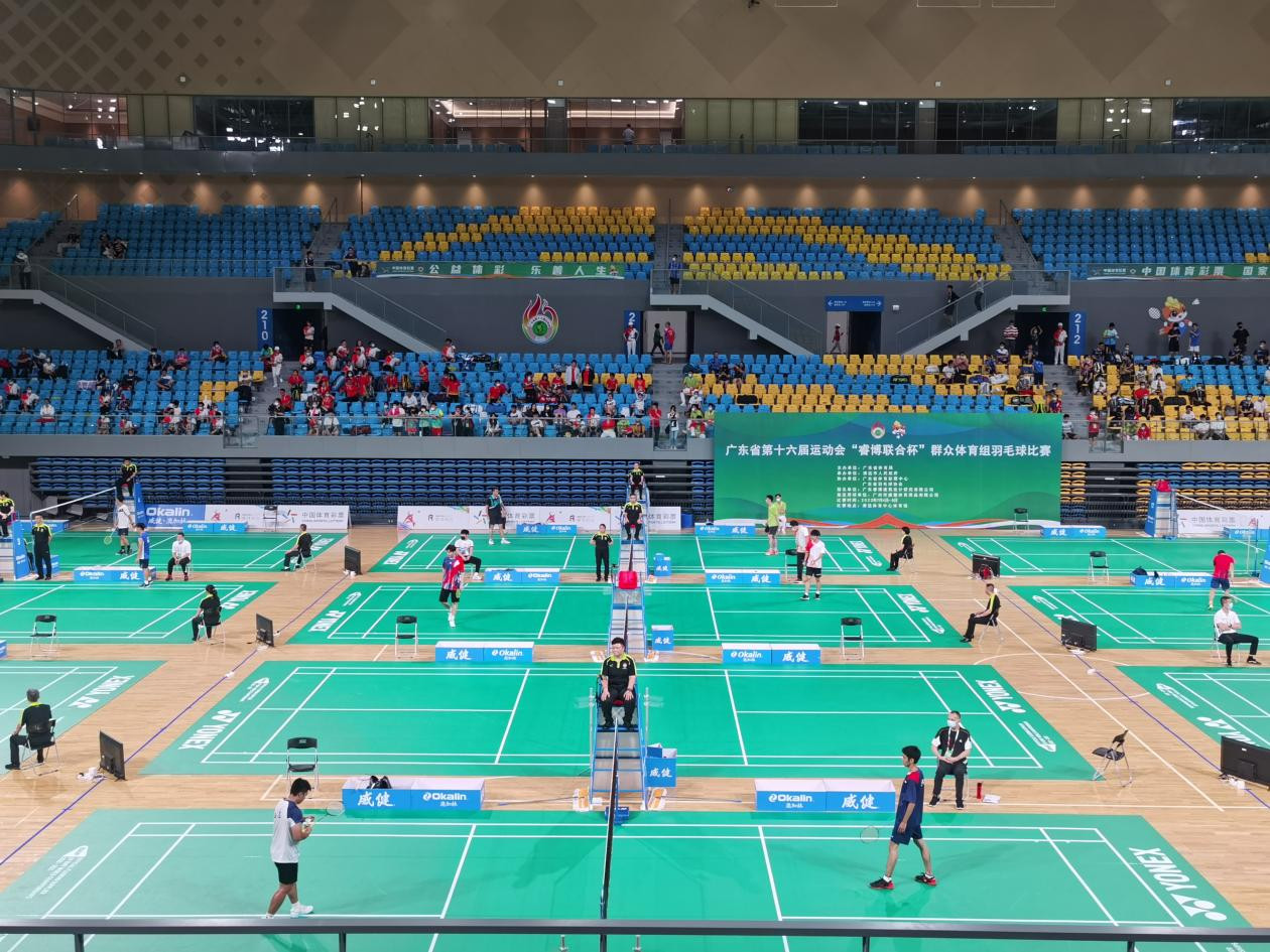 承办本次赛事的清远体育中心体育馆为选手提供舒适的比赛环境。馆内共有16个比赛用羽毛球场,本次群众体育组羽毛球赛共启用其中12个。体育馆建筑面积约3.3万平方米,馆内最大跨度84米,室内采用可拆装式体育木地板,能满足体育馆的多用途径。除了7000多个常规座位以外,体育馆还有近2000个可移动座位,可满足灵活化的观看需求。本次省运会中,清远体育中心体育馆分担举办羽毛球和乒乓球两大赛事。