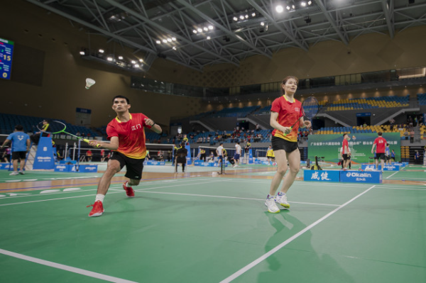 南方网讯(记者/朱江伟)7月8日,广东省第十六届运动会群众体育组羽毛球比赛在清远体育中心体育馆“收拍”。