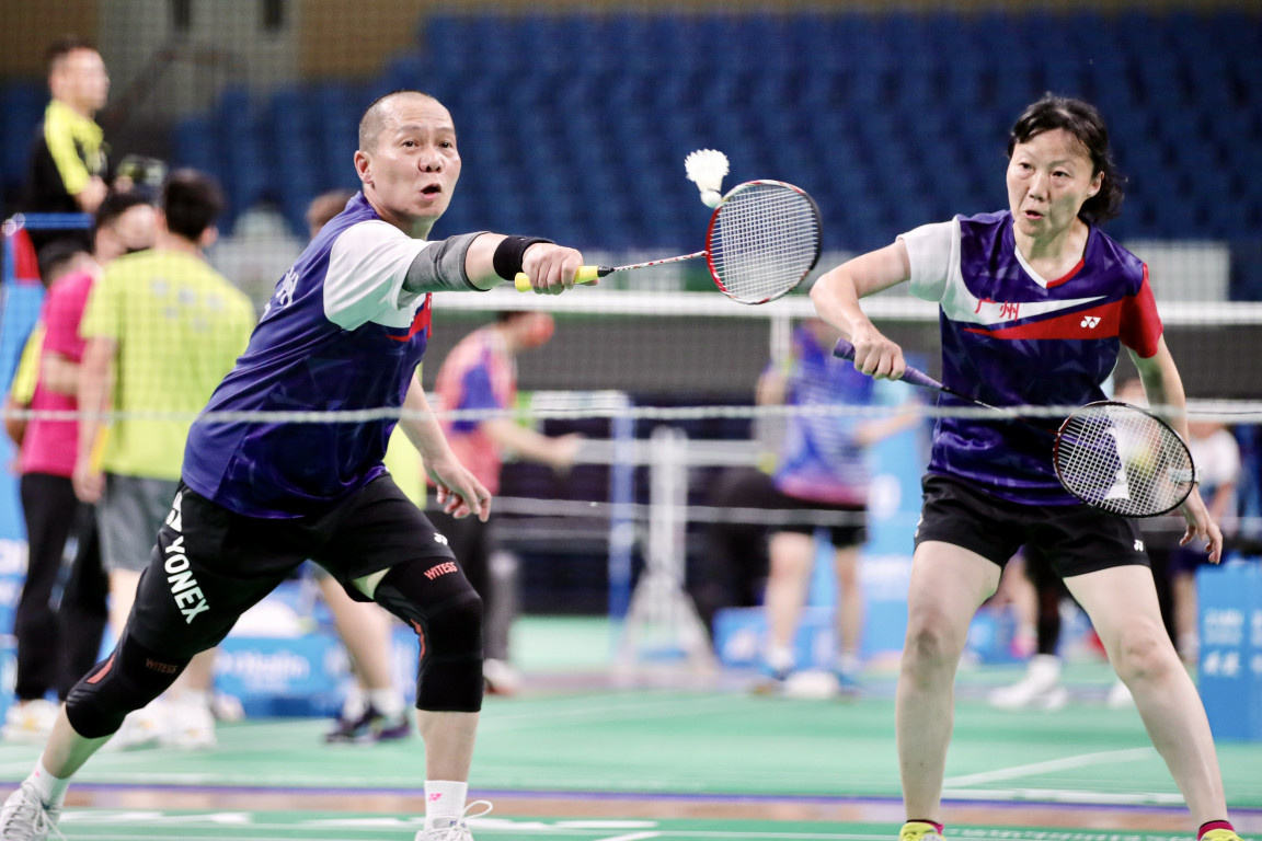 本届省运会首次增设群众体育组,羽毛球作为其中重要一项,吸引众多民间“羽坛高手”齐聚。比赛从7月4日持续至今天,来自全省21个地市422名运动员参与角逐三个年龄组别5个项目的比赛,三个年龄组别分别为A组12到25岁,B组26到45岁,C组46到65岁,其中A、B组均设男单、女单、男双、女双、混双项目,C组设男双、女双、混双项目。