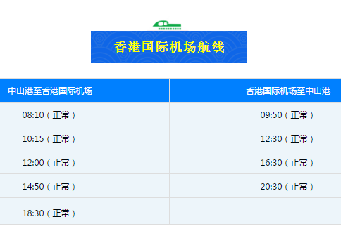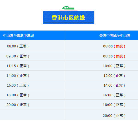 因台风“韦帕“已远离,2019年08月01日中山港往返香港市区、香港国际机场以及深圳机场码头的航班将逐步恢复正常。