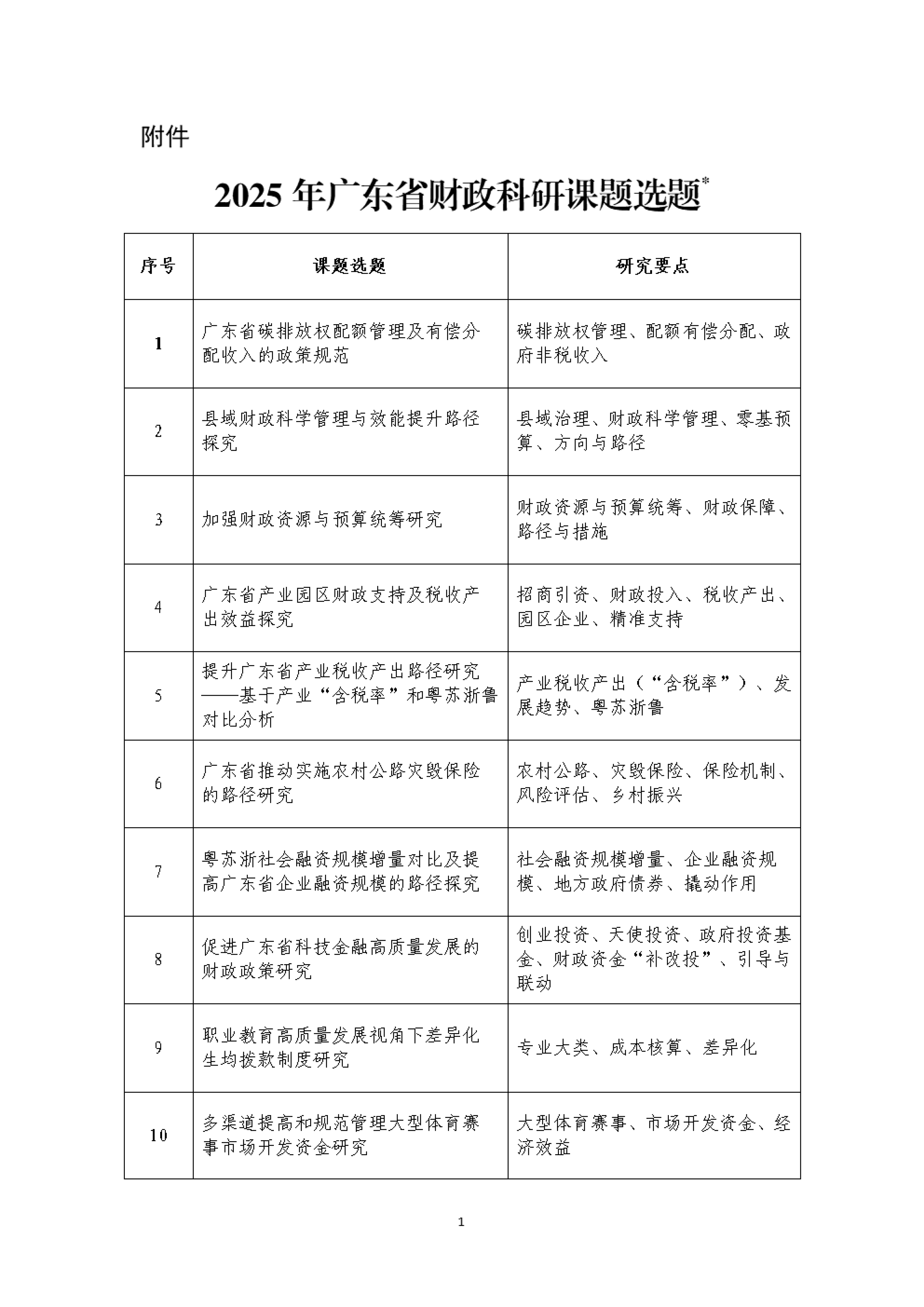 附件1:2024年广东省财政科研课题选题