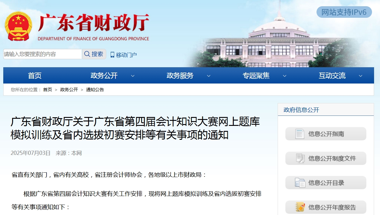 根据广东省第四届会计知识大赛有关工作安排,近日,省财政厅发布《关于广东省第四届会计知识大赛网上题库模拟训练及省内选拔初赛安排等有关事项的通知》,一起来看!