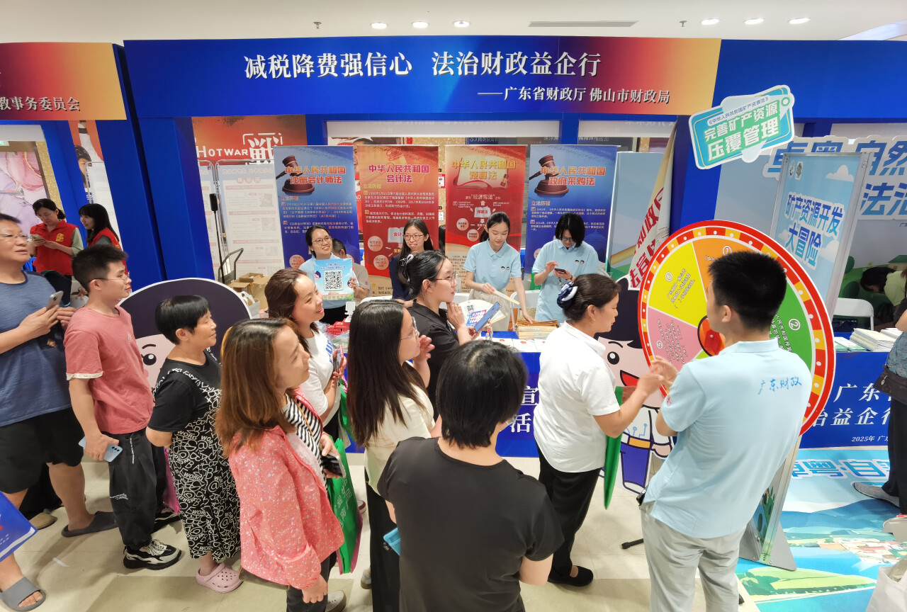 近日,广东省2025年“民法典宣传月”暨“法治益企行”主场普法宣传活动在佛山中央法务区举办,省财政厅作为省落实普法责任制厅际联席会议成员单位受邀参加。为深化省市联动,省财政厅联合佛山市财政局设立普法宣传展位,以“法治财政益企行”为主题,聚焦惠企、利企、强企等财税政策措施宣传,助力在法治轨道上持续优化全省营商环境。