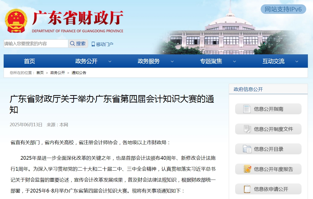 2025年是进一步全面深化改革的关键之年,也是首部会计法颁布40周年、新修改会计法施行1周年。为深入学习贯彻党的二十大和二十届二中、三中全会精神,认真贯彻落实习近平总书记关于财会监督的重要论述,宣传会计改革发展成果,普及财会法律法规知识,根据财政部统一部署,于2025年6-8月举办广东省第四届会计知识大赛。一起来看有关事项通知。