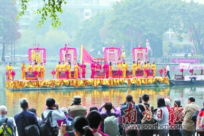 1月29日,“迎新春·百花展”广州水上花市在荔湾区荔枝湾景区开市。开市仪式上最具看点的节目当属非遗项目英歌舞。