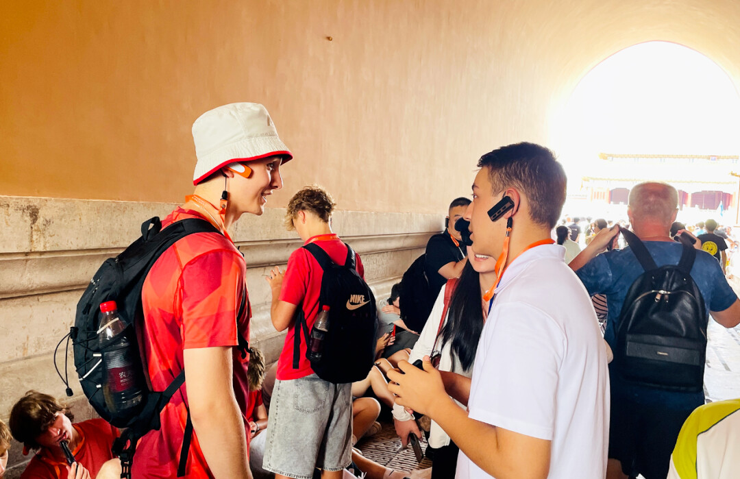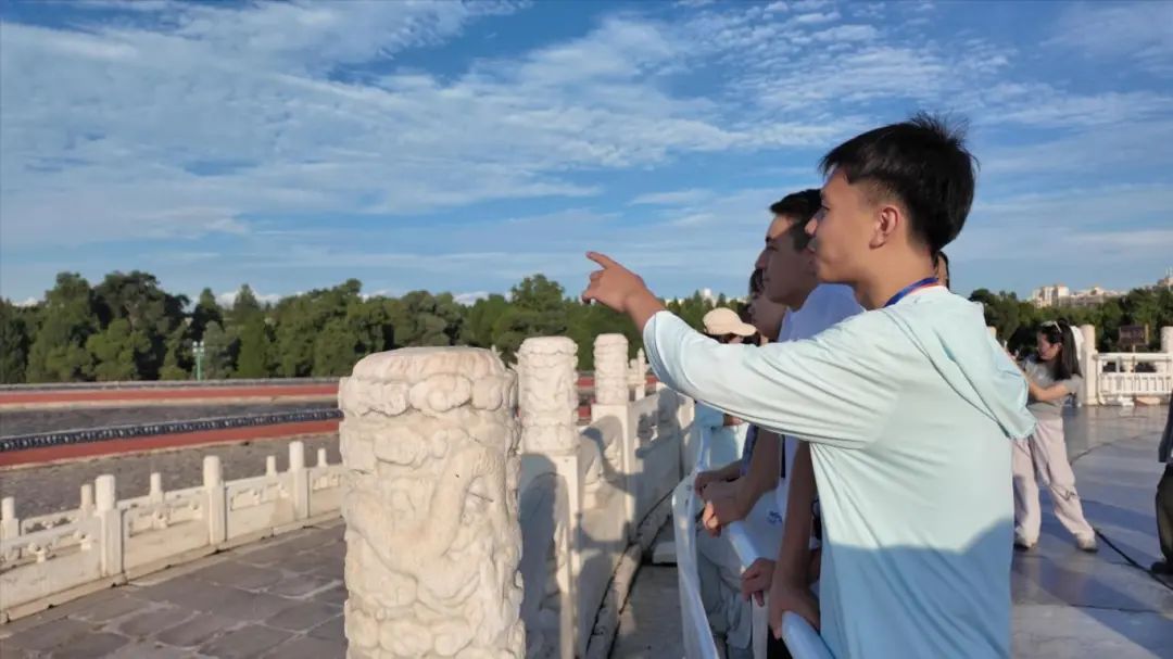 研学营第二站,是穿越六百年时光的故宫博物院。站在太和殿前的广场上,望着雄伟的宫殿群,同学们忍不住发出感叹:“太大了,太壮观了!”他们仔细听着讲解内容,不时驻足拍摄精美的宫殿和屋脊兽,还在红墙下互相合影留念。伽师县第一中学学生依力扎提·艾孜提力还勇敢地和在故宫游览的英国游客进行了交流。“故宫很精美,一砖一瓦都有故事,在这里能感受到中华文明的悠久历史。”依力扎提说,“这也是一次难得的经历,在这里见到了很多外国人,还和他们用英语交流,提升了我的口语自信心。”天坛公园里,祈年殿的恢弘气势与回音壁前的声学奇迹更让同学们感叹中华传统文化真是博大精深。