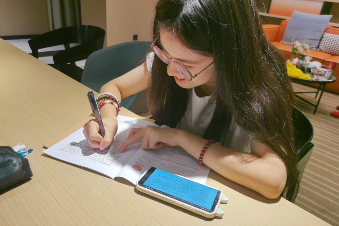 研学中的夜晚,喀什学子认真记录当天的研学笔记。