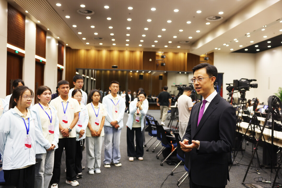 走进外交部蓝厅,同学们立刻被这里的氛围所感染。当发言人步入会场,大家瞬间安静下来。观摩例行记者会后,发言人与同学们交流,分享外交一线工作经历,勉励喀什学子好好学习,未来为中国外交贡献力量,在学子们心中种下外交梦想的种子。