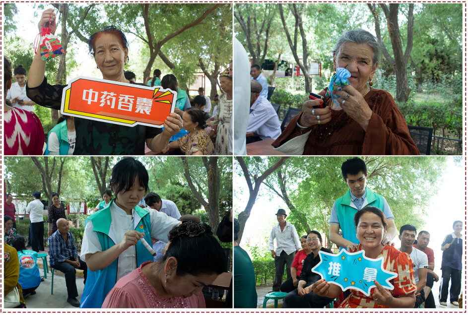与此同时,由广州中医药大学第二临床医学院(广东省中医院)“新粤相印”志愿服务队精心打造的中医药文化市集在伽师县英买里镇卫生院开展。