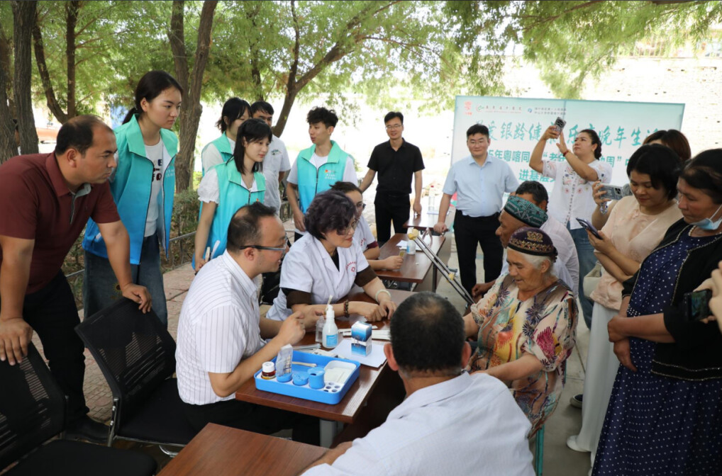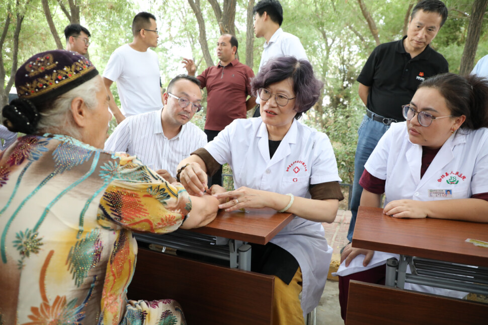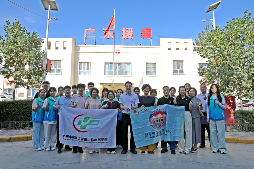 7月25日、26日,在广东援疆前方指挥部指导下,广东省中医院党委副书记谭利斌,副院长、广东省名中医杨志敏率领广州中医药大学第二临床医学院(广东省中医院)“新粤相印”志愿服务队,跨越万里奔赴新疆喀什,开展2025年粤喀同心“老年健康活动周”中医药进基层义诊活动。