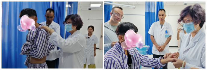 在伽师县西克尔库勒镇卫生院教学查房时,住院村民则莱罕·喀斯木的脚跟疼得走路都费劲,杨志敏通过手部扎针治疗,短短几分钟,她便从难以下床,到可以缓慢自主走路。则莱罕·喀斯木满意地不断点头示意,同病房的患者也都啧啧称奇。得知团队结束了义诊,她还走出病房,热情向广东名医一行挥手告别。