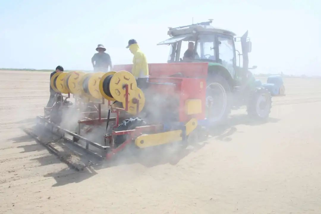 塔克拉玛干沙漠边缘地带正在播种油莎豆。