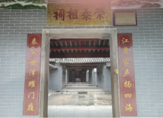 荣泰祖祠位于龙门县龙田镇西埔围村内,坐东北向西南,四进。祠堂建筑雄伟,周边环境干净整洁,在祠堂大门两侧有一副对联“江夏家声扬四海 泰公世泽耀门庭”。