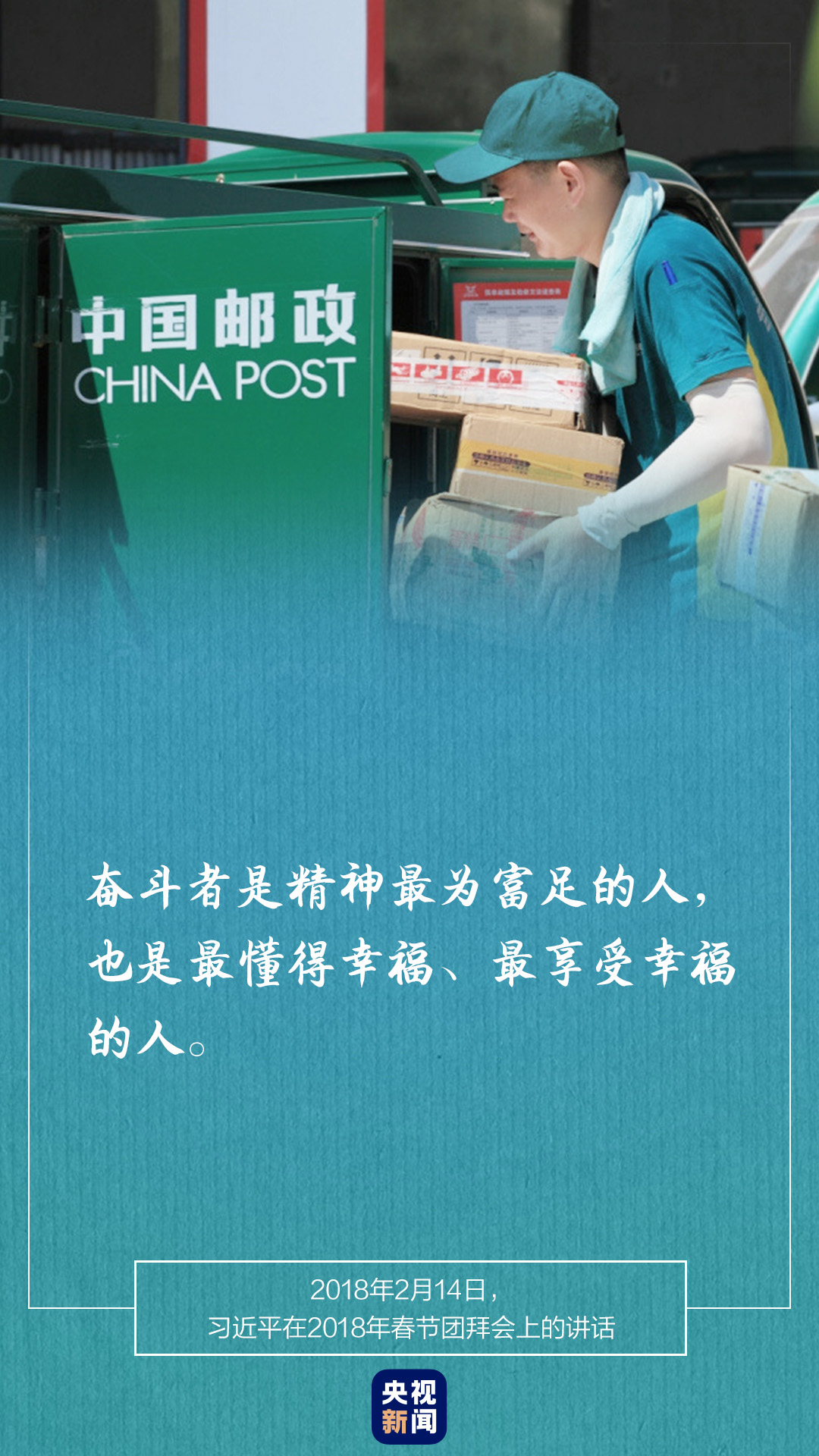 习近平多次阐述幸福与奋斗的关系。2018年3月20日,习近平在第十三届全国人民代表大会第一次会议上说:“中国人民是具有伟大奋斗精神的人民。”“中国人民自古就明白,世界上没有坐享其成的好事,要幸福就要奋斗。”