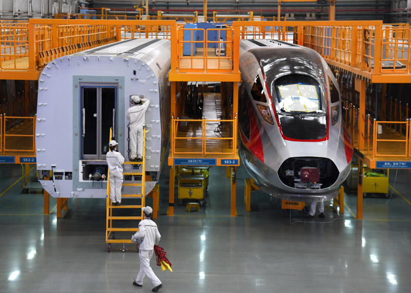 △3月25日,工人在位于青岛市城阳区的中车四方股份公司生产线上忙碌。随着疫情防控成效不断显现,复工复产进度加快,3月份主要经济指标包括工业、服务业、投资、社会消费品零售总额和进出口,降幅都是大幅度收窄,呈现改善趋势。