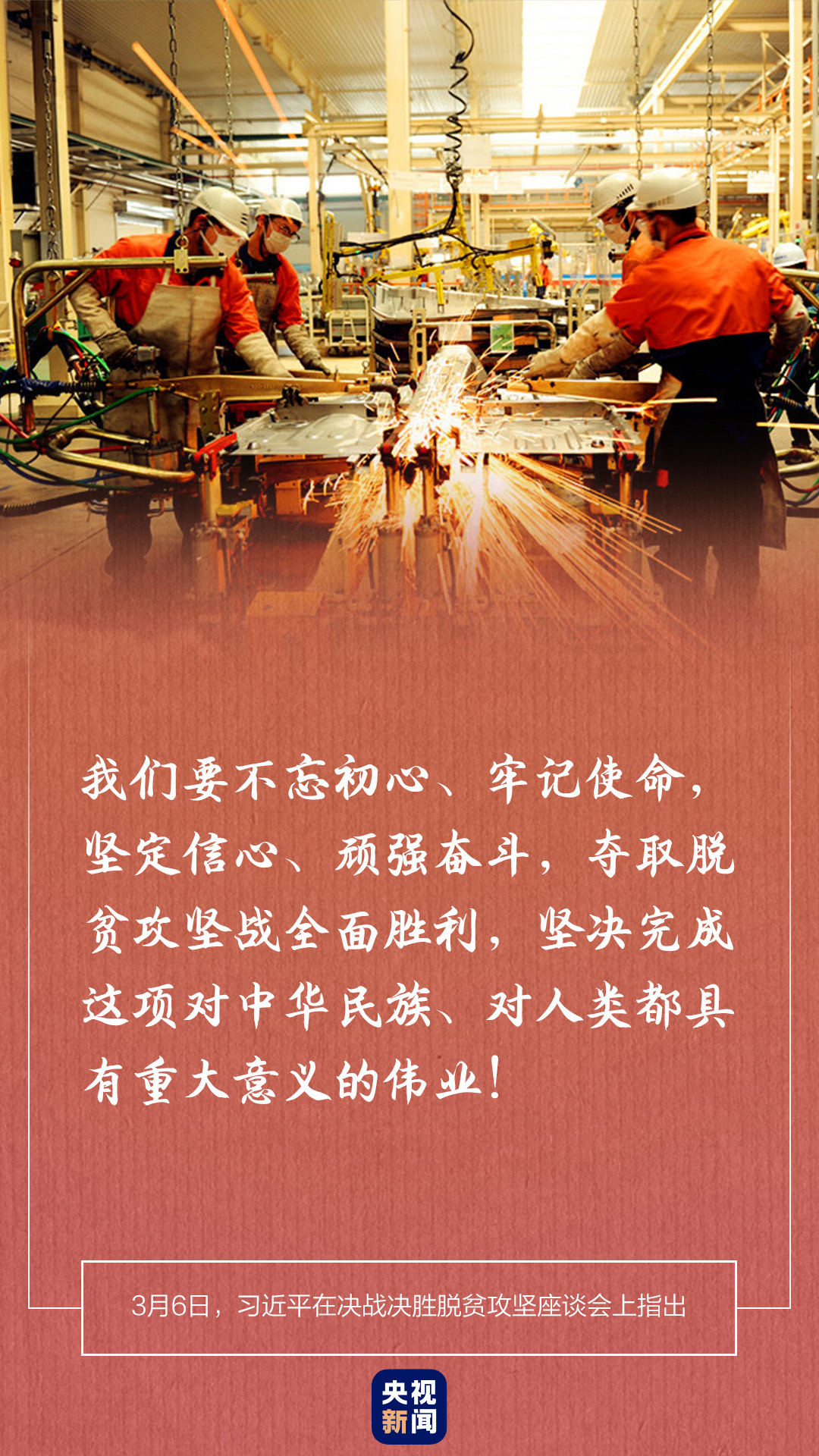 3月6日,习近平在决战决胜脱贫攻坚座谈会上指出:“这些成绩的取得,凝聚了全党全国各族人民智慧和心血,是广大干部群众扎扎实实干出来的。”