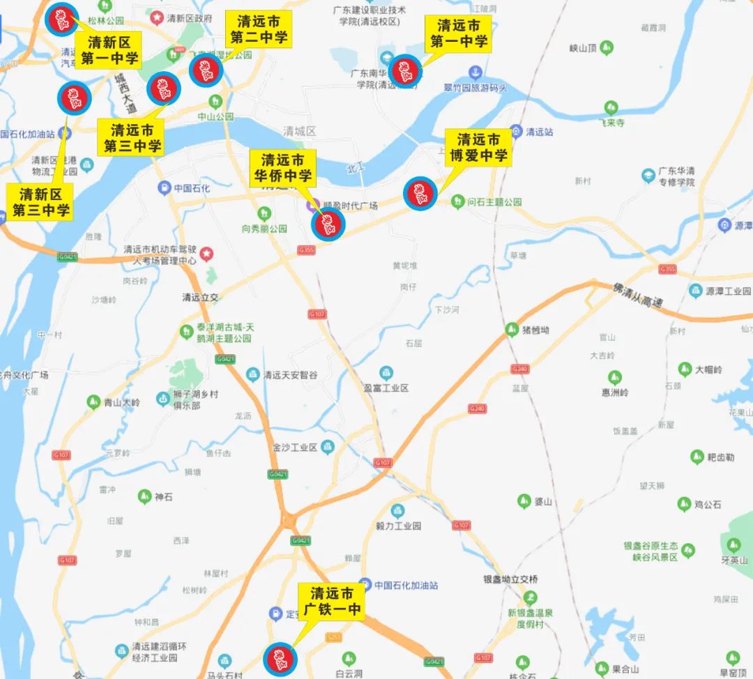 今年高考,清远共有15个考点,分别是:清远市第一中学、清远市第二中学、清远市第三中学、清远市华侨中学、清远市广铁一中(万科城)外国语学校、清远市博爱学校、清新区第一中学、清新区第三中学、英德中学、英德市第一中学、连州中学、佛冈县第一中学、连山中学、连南民族高级中学、阳山县南阳中学。