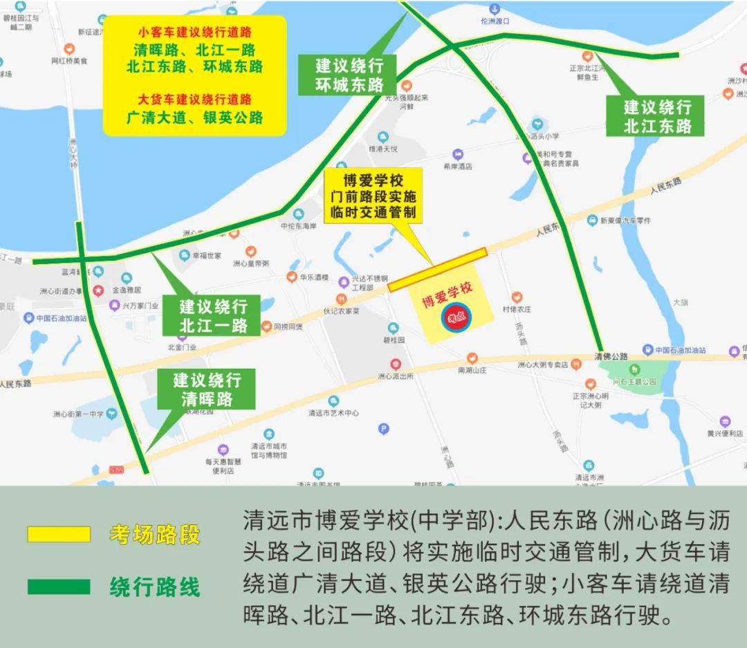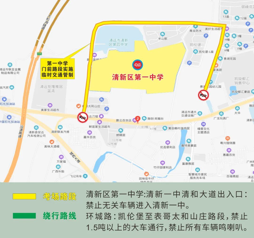 清新一中清和大道出入口;环城路:凯伦堡至表哥太和山庄路段。
