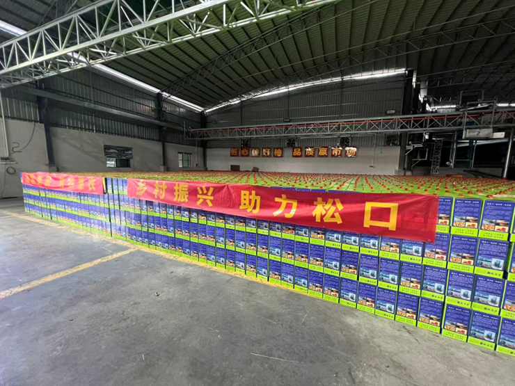 工作队依托帮扶单位资源优势,通过旅游控股集团工会发起“以购代帮”倡议,得到所属24家企业积极响应,订单接连不断;主动“走出去”、精准“引进来”,积极对接粤港澳大湾区多家大型企业前来洽谈采购。最终,10辆满载金黄蜜柚的大货车,从松口镇直供广州、深圳等地。