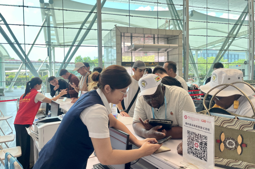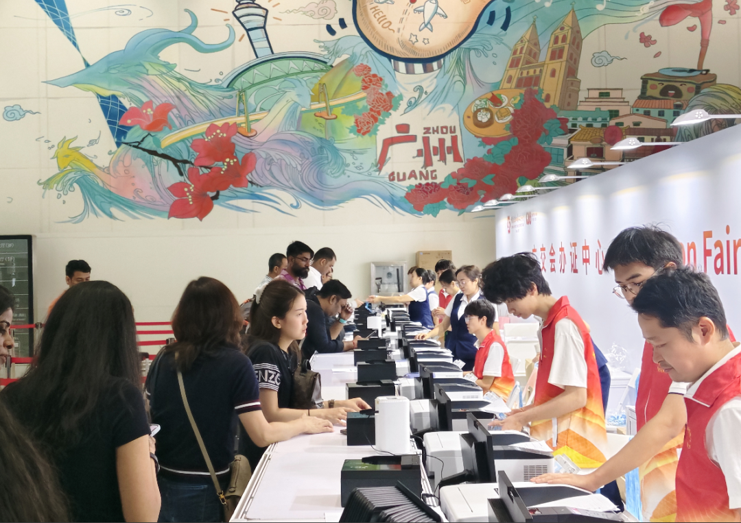 本届广交会,白云机场优化了机场办证点的办证流程,二号航站楼办证点新增8个人工席位及护照扫描仪,境外采购商只需出示护照即可快速完成注册。同时,机场办证点提供广交会APP线下推广服务,方便客商获取展会最新资讯及专属服务。