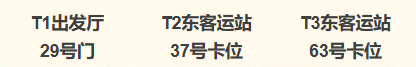 T1航站楼12号门→T2航站楼42号门→T3航站楼62号门