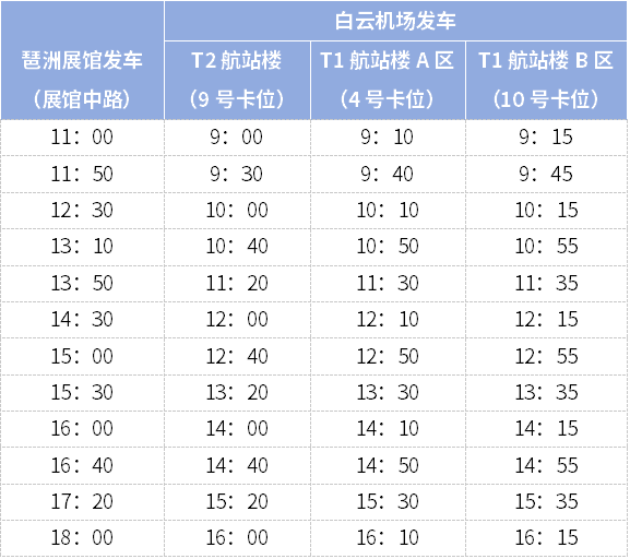 特殊安排:每期最后一天,白云机场往琶洲方向不发班。