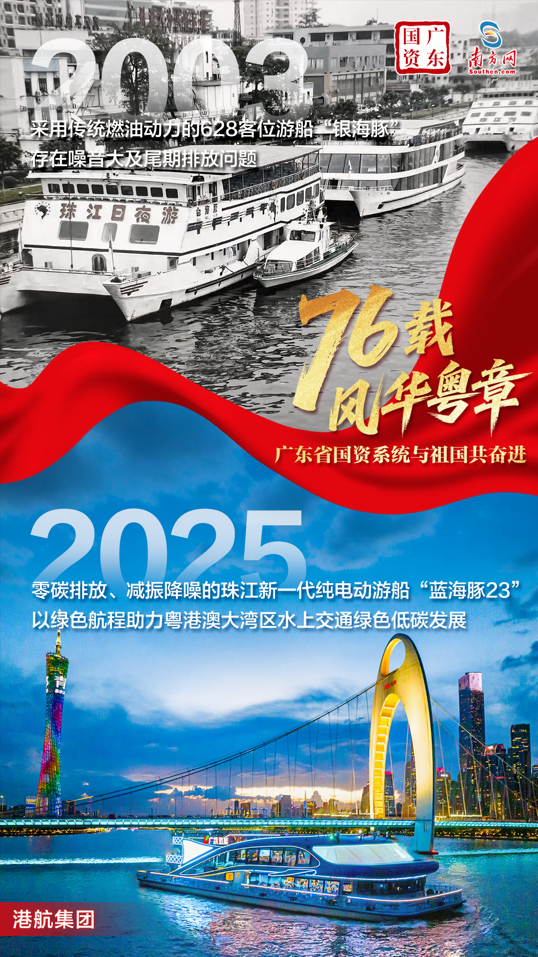 进入新时代,港航集团以“科技创新+资本赋能”助力水上旅游观光产业升级,在珠江游市场率先推动蓝海豚旅运从传统观光向绿色低碳全面转型,从粤港澳大湾区市场走向全国多点布局。2021年,港航集团投运粤港澳大湾区首艘入级纯电动游船;2025年6月,第三艘428客位纯电动游船开工建造,充分彰显港航集团在绿色航运领域的领先实力与使命担当。
