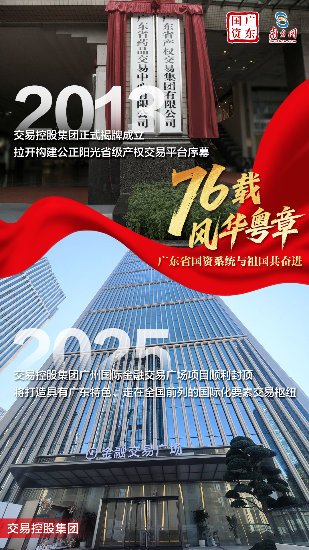 2013年6月,经广东省人民政府批准,在原南方联合产权交易中心的基础上组建广东省产权交易集团,初期专注国有产权交易,全力搭建省内产权交易流转基础设施平台。2018年,集团获批更名为“广东省交易控股集团”,开展全口径产股权交易业务;2021年整体承接广东省政府采购中心,2022年加挂“广东省公共资源交易中心”牌子,形成“一个机构、两块牌子”运营格局。