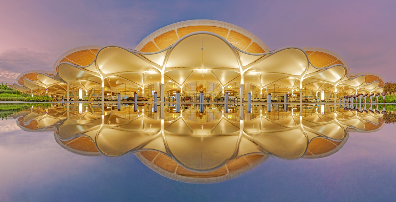 T3航站楼建筑造型以“花”为设计主题,融入“云山珠水”“花城”的广州特点,建筑造型如鲜花盛放形成“羊城花冠”的建筑意象,成为广州城市门户形象的地标性建筑。