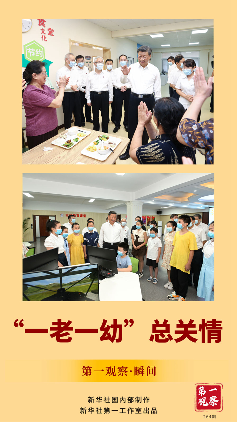 两张照片定格的温暖瞬间,传递出习近平总书记对“一老一幼”的深切关怀。