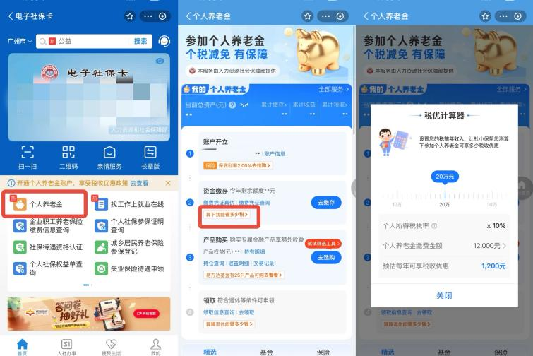 当年所缴纳的全部金额,可在次年度办理个人所得税汇算清缴时,进行税前扣除,从而减免应纳税额。收入越高,省税越多。节税额可通过“电子社保卡”小程序内的“税优计算器”一键测算。