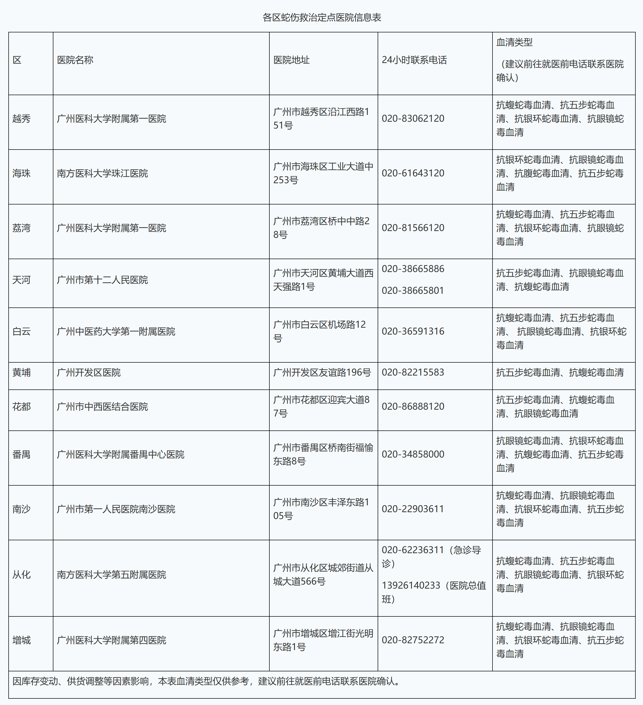 广州各区蛇伤救治定点医院名单如下,赶紧收藏↓