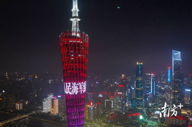 “热烈庆祝人民海军成立73周年”“人民海军忠于党 舰行万里不迷航”……今年4月23日,是人民海军73岁生日。22日晚,在广州地标性建筑“小蛮腰”,绚丽灯光照耀下,几行大字缓缓滚动。花城广场前,不少游客被这一幕吸引,纷纷驻足观看,并在心底为人民海军送上最真挚的生日祝福。