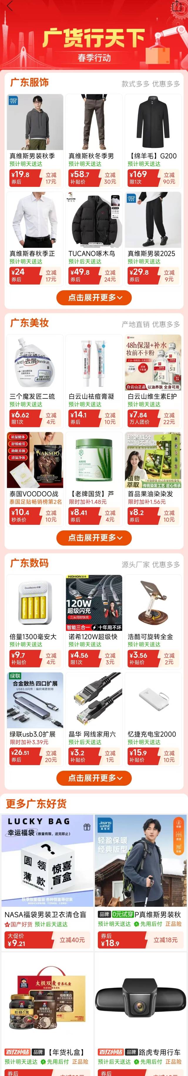 作为助力“广货行天下”春季行动的重要力量,在“广货行天下”春季行动发布会暨家电专场促销活动举行前夕,记者从各大电商平台了解到,平台不仅通过设立促销专区的方式网罗品类丰富的广东好产品向消费者集中展示,同时还通过优惠券和平台补贴等形式,为消费者带来实实在在的优惠,助力“广货行天下”。