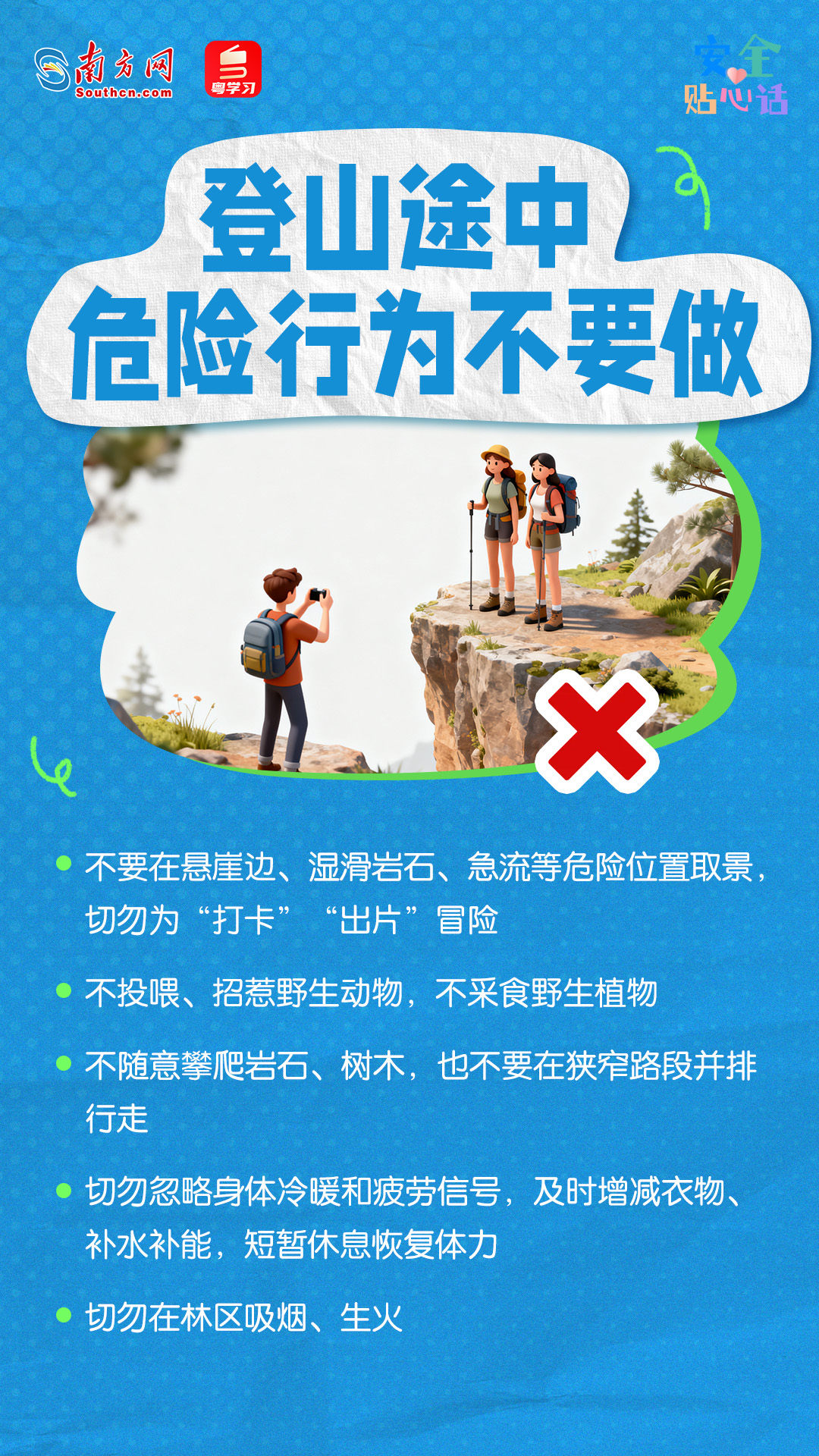 回顾这3起事件,3人均为独自擅闯未开放的“望郎归”区域,因缺乏同伴照应与及时的应急支援而丧生。可见,徒步、登山真不是“有腿就行”,也不能“说走就走”。谨记,登山徒步务必选择已开放、有人员管理的正规区域,做足准备、谨慎参与、结伴而行、安全第一!