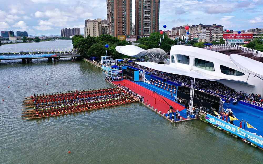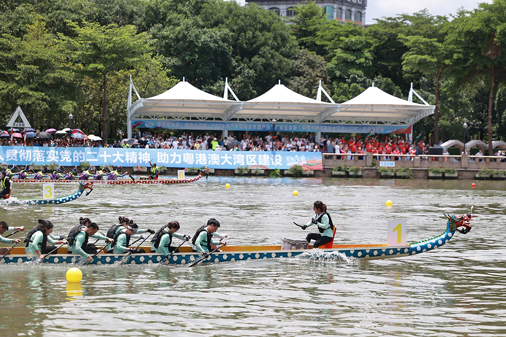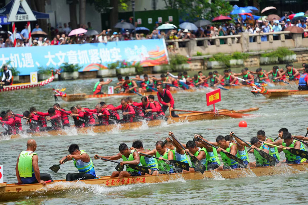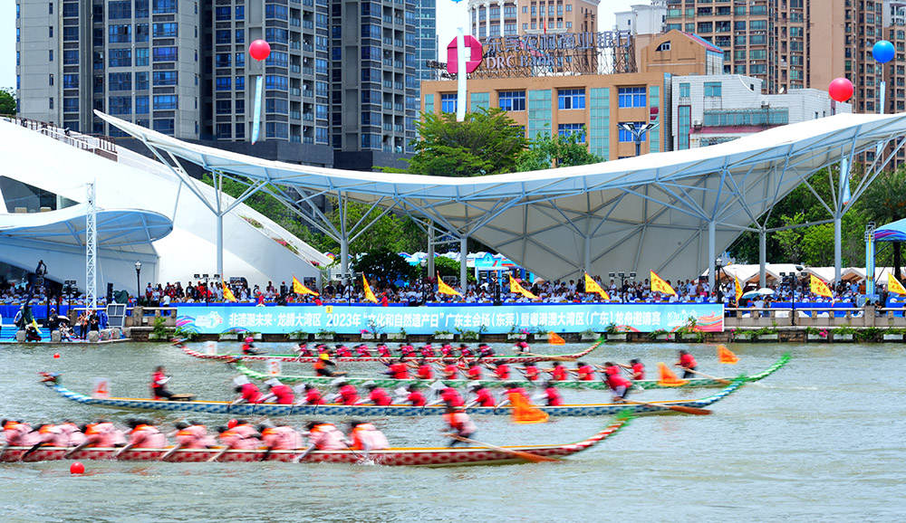 南方网讯(记者/郭昊奇)6月10日上午,2023年粤港澳大湾区(广东)龙舟邀请赛暨东莞龙舟锦标赛在东莞市沙田镇龙舟公园开赛,共有粤港澳大湾区“9+2”城市18支男女混合龙舟队、东莞水乡沿海镇街10支男子传统龙舟队参赛,分别举行“粤港澳城市组”“东莞镇街组”组别600米竞速,全面展示龙舟文化的独特魅力和深刻内涵,凸显“人文湾区,一水同舟;万众一心,赛龙夺锦”的精神内核,彰显大湾区一家亲,携手共进、奋勇向前的高质量发展态势。