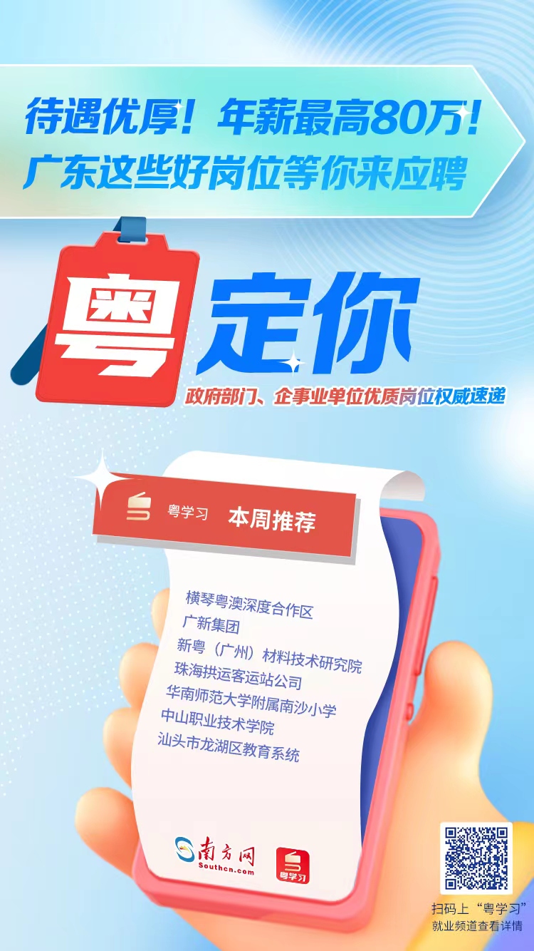 本周南方网、粤学习客户端为你梳理汇总的新一批好岗位来了!