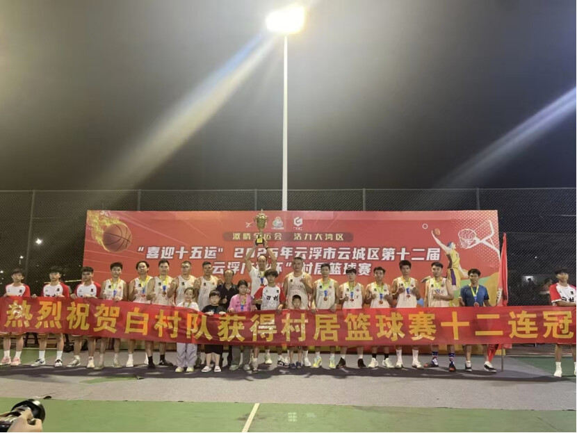 2025年10月白村篮球队荣获云浮市云城区万村篮球赛第一名,实现十二连冠。
