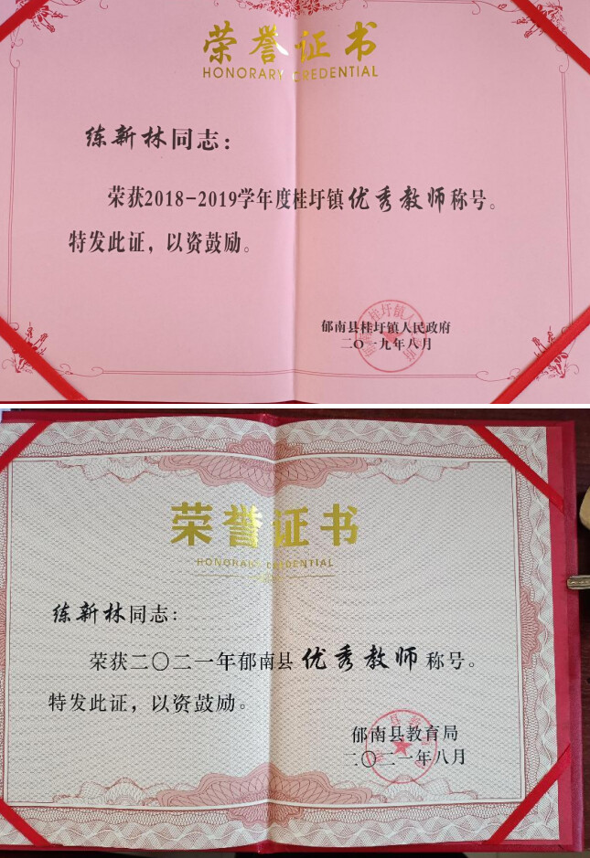 练新林,男,中共党员,山禾地村人,大学本科,毕业于广东肇庆学院,小学高级教师,1994年7月至2005年8月在桂圩镇中心小学任教,2005年9月至今在桂圩镇中学任教。2018-2019学年获桂圩镇优秀教师称号;2021年获郁南县优秀教师称号。